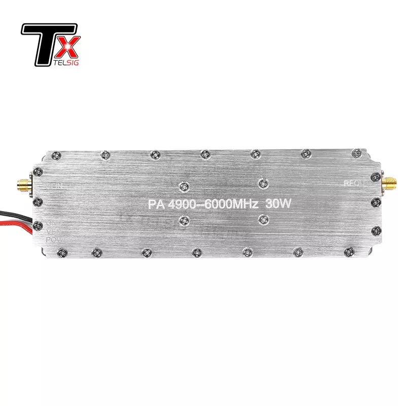 Modul ojačevalnika moči je 4900-6000 MHz brez digitalnega vira napajanja s kapaciteto 30 W: Kompaktna zasnova vam omogoča enostavno integracijo v obstoječe sisteme in dolgo časa zagotavlja stabilno delovanje brez opaznega zmanjšanja zmogljivosti. Običajno se uporablja na področju komunikacije, radarjev in FPV zaščite dronov. Frekvenčno območje ni fiksno, uglaševanje je možno.